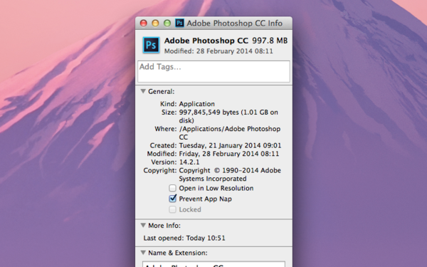 如果你使用了大量的自动任务或者动作时,你会发现PS运行地特别慢。原因何在?原因就在于Mac OSX 10.9版本推出的一个名为“App Nap”的功能。事实上,该功能一开始还是很有用的,在你进行多任务处理时,它可以帮你节省电量。不过该功能对于PS来说,却不是个好伙伴。